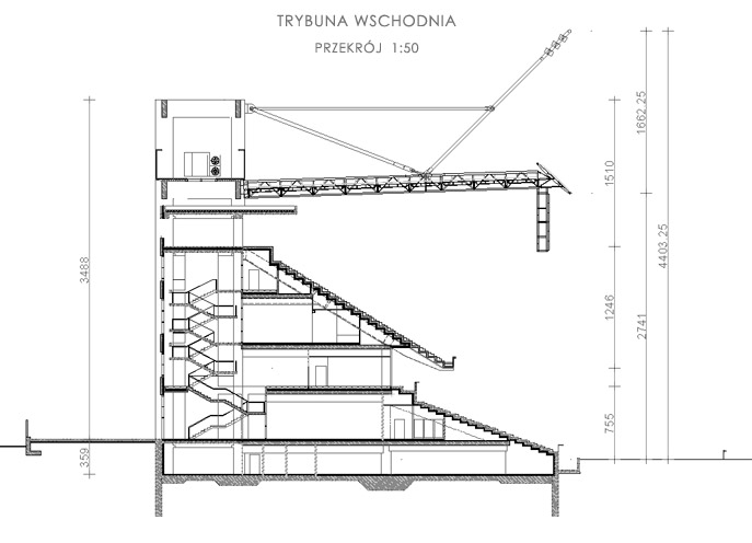 | Poziom +9,89 . strefa kibiców (balkon trybuny) . 3865,45 m2 |
