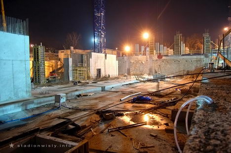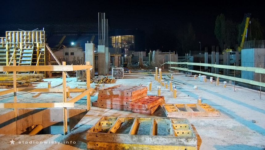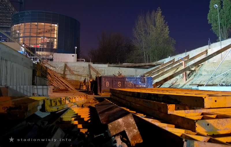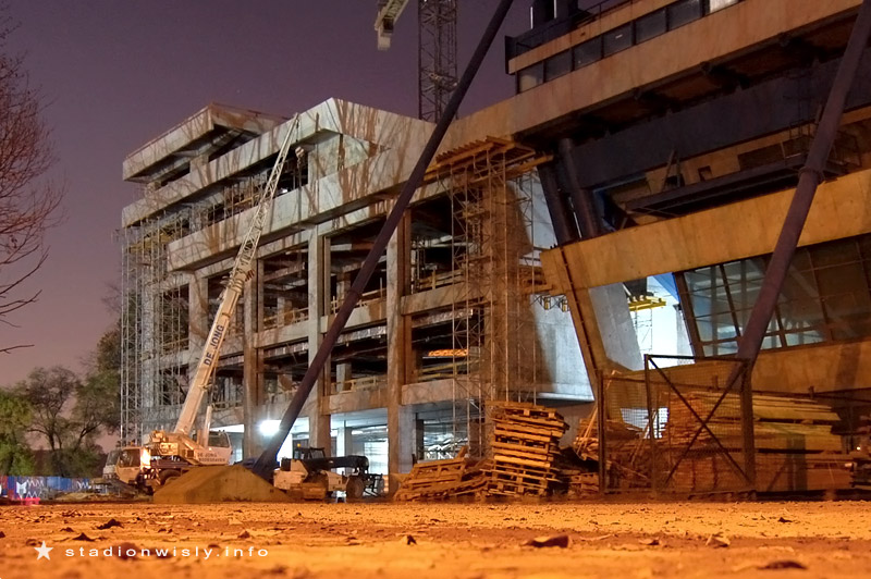 trybuny wzdłuż boiska będą stały mniej więcej w tym samym miejscu co stały stare trybuny... czyli dość daleko od boiska... Jak to na Wisełce jest tradycją między trybunami a reklamami musi zmieścić się karetka, panowie lekarze też sobie muszą meczyk obejrzeć