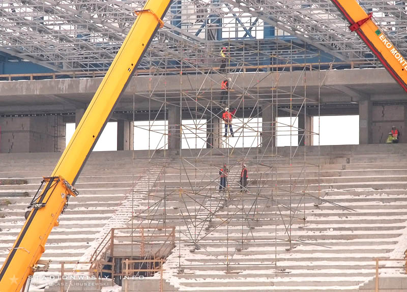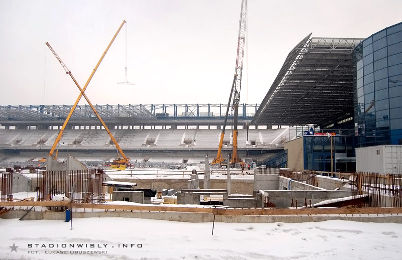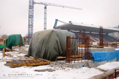 kroku | 2010-02-16 01:47:16, ip: .. wschodnia trybuna tylko pozornie idzie wolniej. wiadomo, mrozy zima to jedno, ale pamietajcie ze prace nad fundamentami to połowa calej roboty!! zawsze tak jest: pół roku parkan i nic, a potem w pół roku z nikąd rośnie jak na drożdżach zobaczycie;)