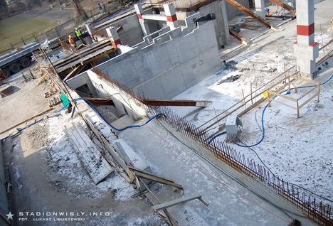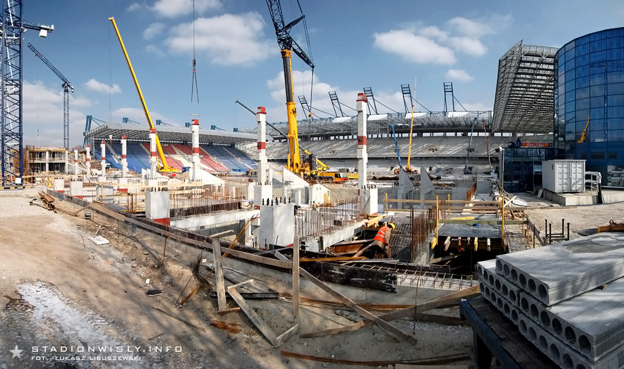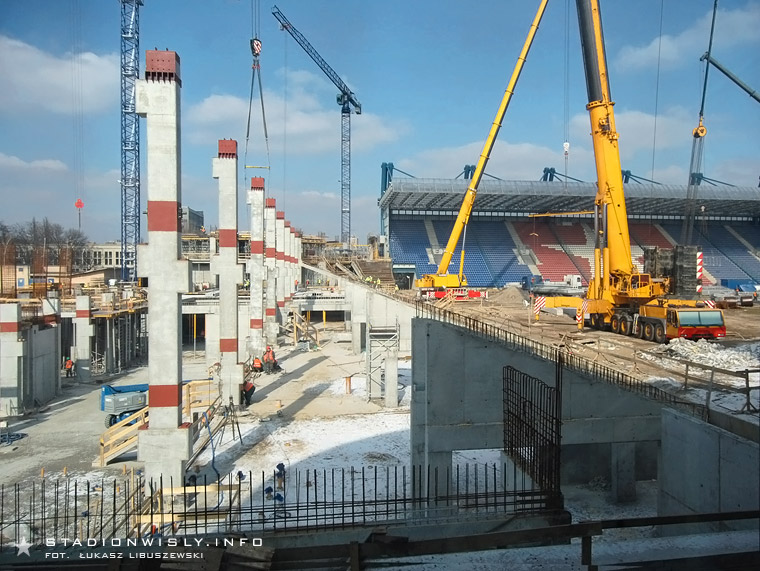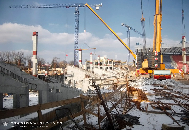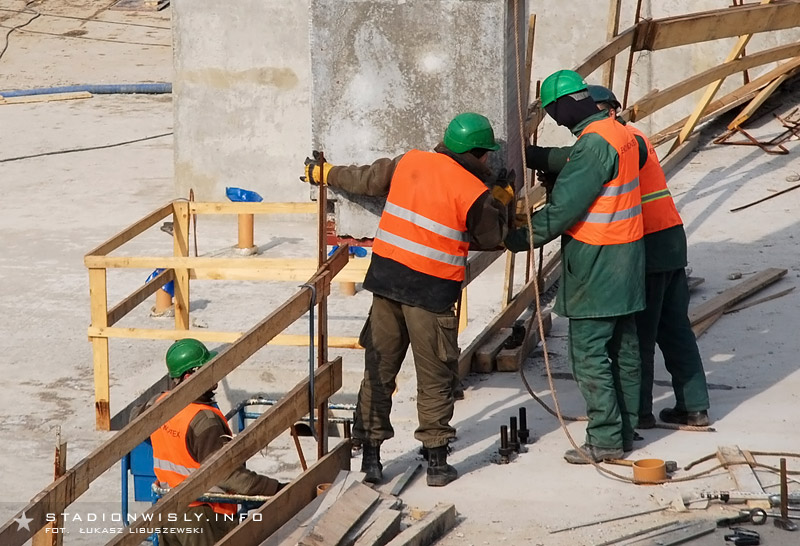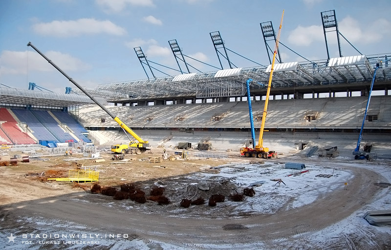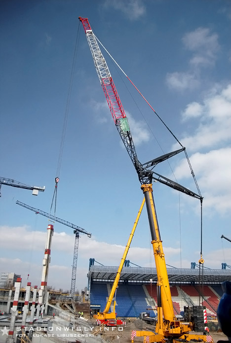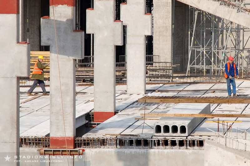 Łukasz Libuszewski2010-03-09Dźwig ze wschodniej części budowy przeniósł się pod trybunę główną by przyśpieszyć pracę przy układaniu prefabrykatów