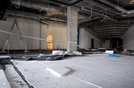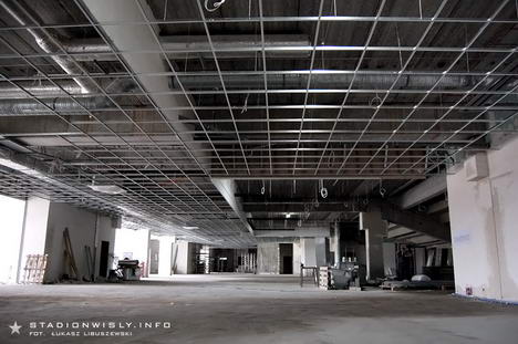 We wnętrzu trybuny na poziomie 0,00 trwa montaż konstrukcji podwieszanego sufitu. Obudowywane są także klatki schodowe, oraz pomieszczenie przeznaczone na restauracje. W niektórych pomieszczeniach trwają jeszcze prace przy ocieplaniu podłóg oraz ścian przy trybunie.