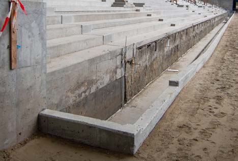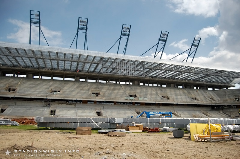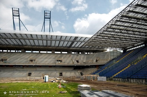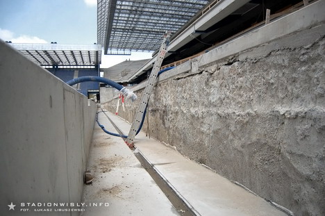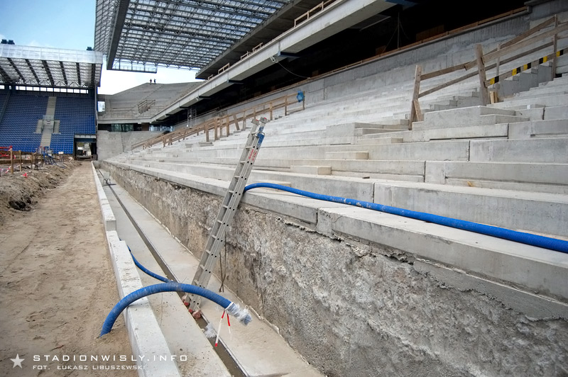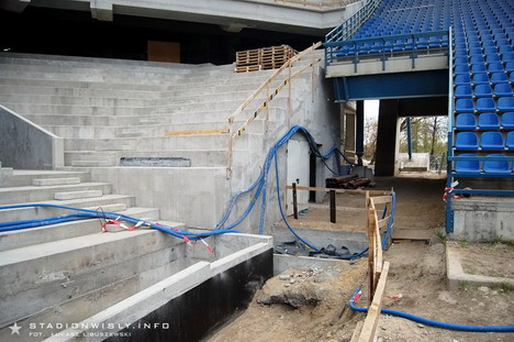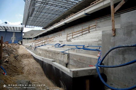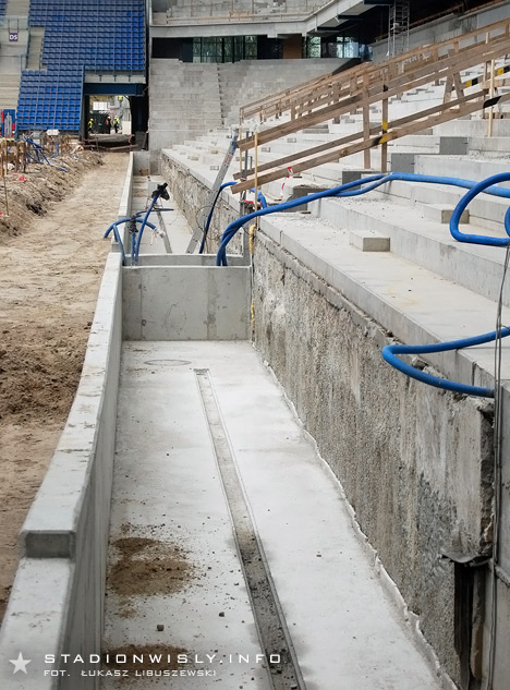 Przy trybunie wschodniej gotowa jest już fosa której zadaniem będzie oddzielenie kibiców od boiska. Co się tyczy krzesełek, to niestety (wbrew wcześniejszym informacjom) ich montaż rozpocznie się dopiero w przyszłym miesiącu.