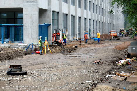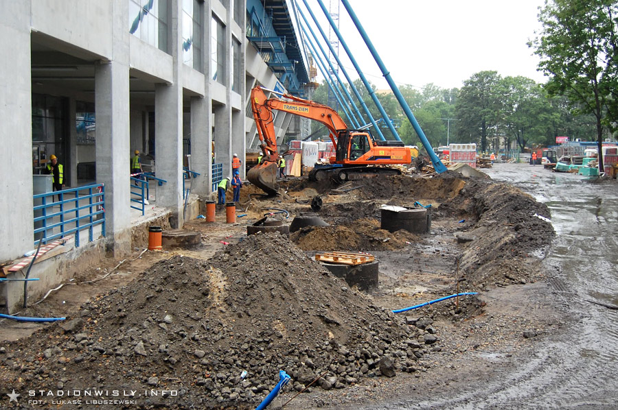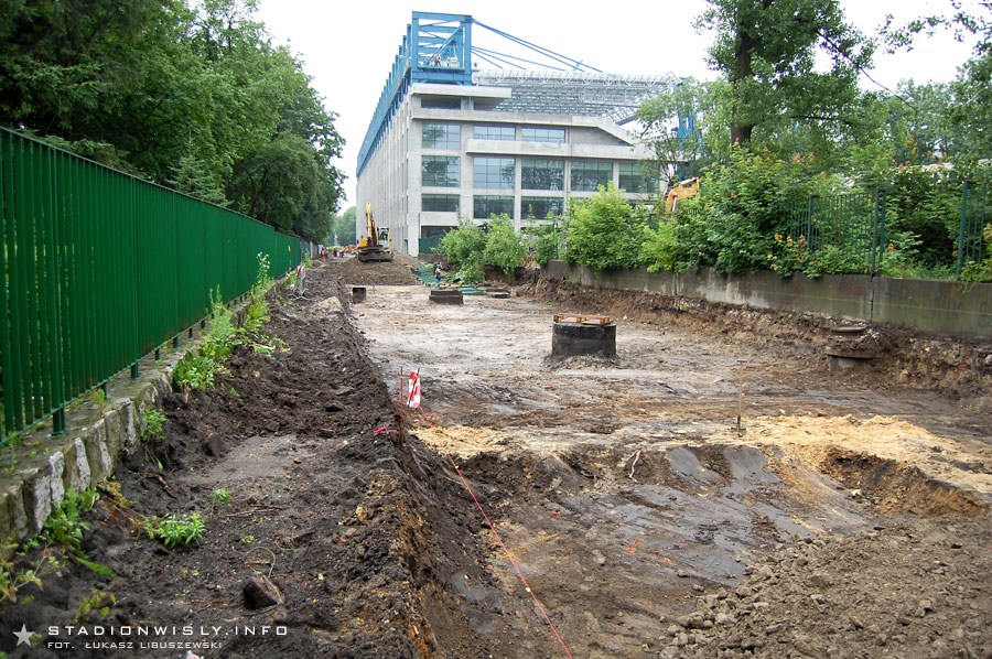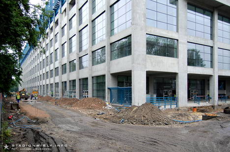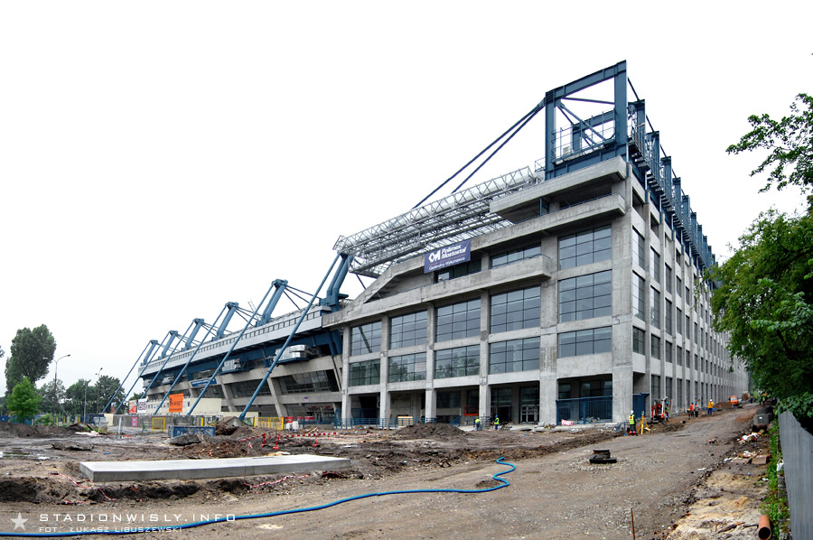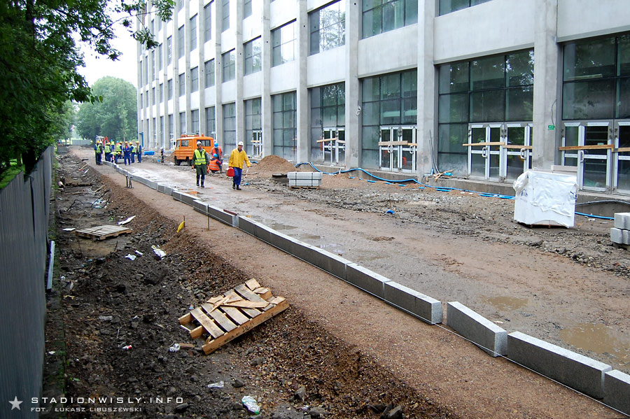 Za trybuną wschodnią trwają obecnie prace przy budowie ulicy Reymana. Teren ten został już usypany kilkudziesięciu-centymetrową warstwą ziemi, na której pojawi się asfaltowy deptak oraz ścieżka rowerowa. Dodatkowo przy ogrodzeniu z parkiem Jordana zaplanowany został pas zieleni. Poziom nowej ulicy będzie niemal na tej samej wysokości co parter trybuny.