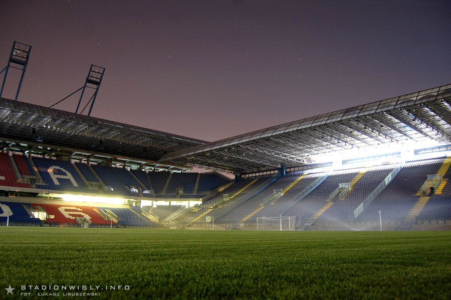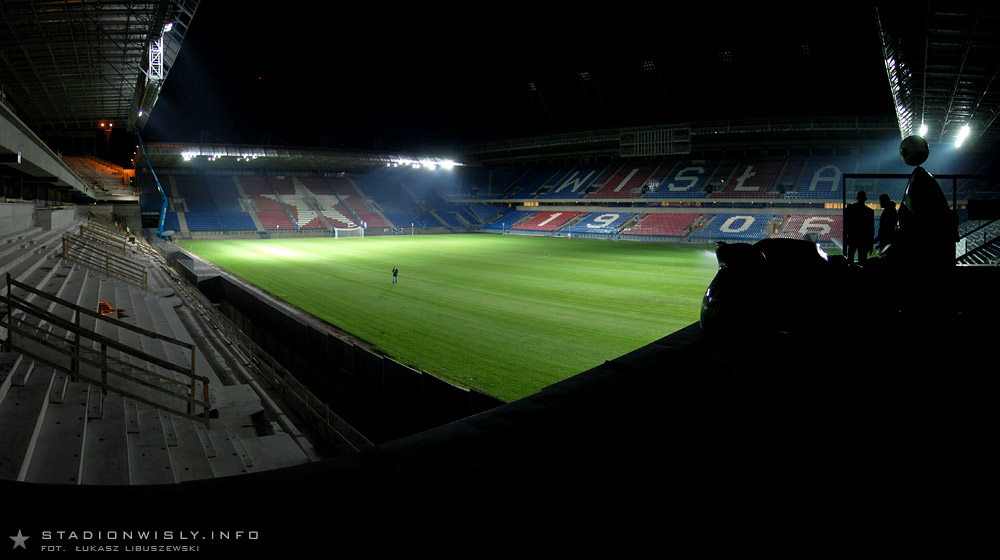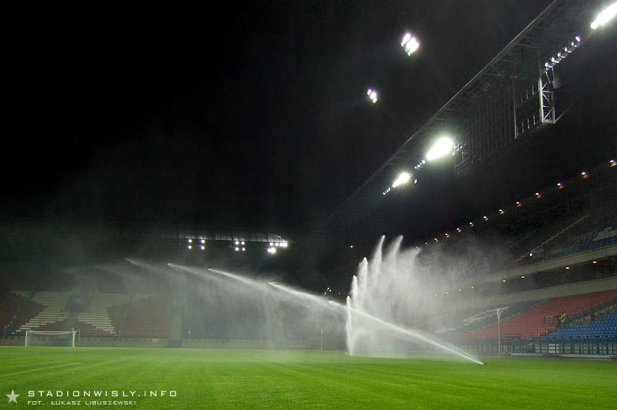 Nocna aura, rozdarta świeżo skompletowanym oświetleniem, ukazała niespotykaną o tej porze liczbę pracowników wykonawcy na trybunie zachodniej, dostojną trójkolorową trybunę wschodnią przesłoniętą rzęsistymi strumieniami zraszaczy oraz angielską zieleń dziewiczej murawy. Zapraszamy do obejrzenia zdjęć z tego nadzwyczaj bezprecedensowego w naszym mieście wydarzenia.