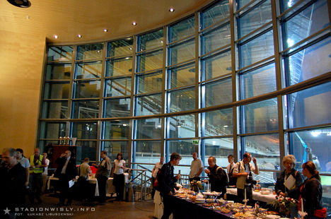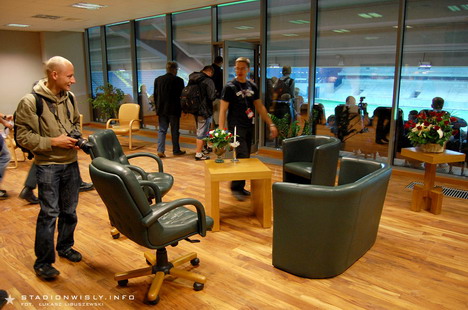 Trybuna zachodnia - vip roomy, gigantyczny biznes klub z ogromnym zapleczem gastronomicznym, zaplecze sportowe z mini kliniką, sale konferencyjne z zapleczem dla dziennikarzy, pub dla piłkarzy i wiele innych.